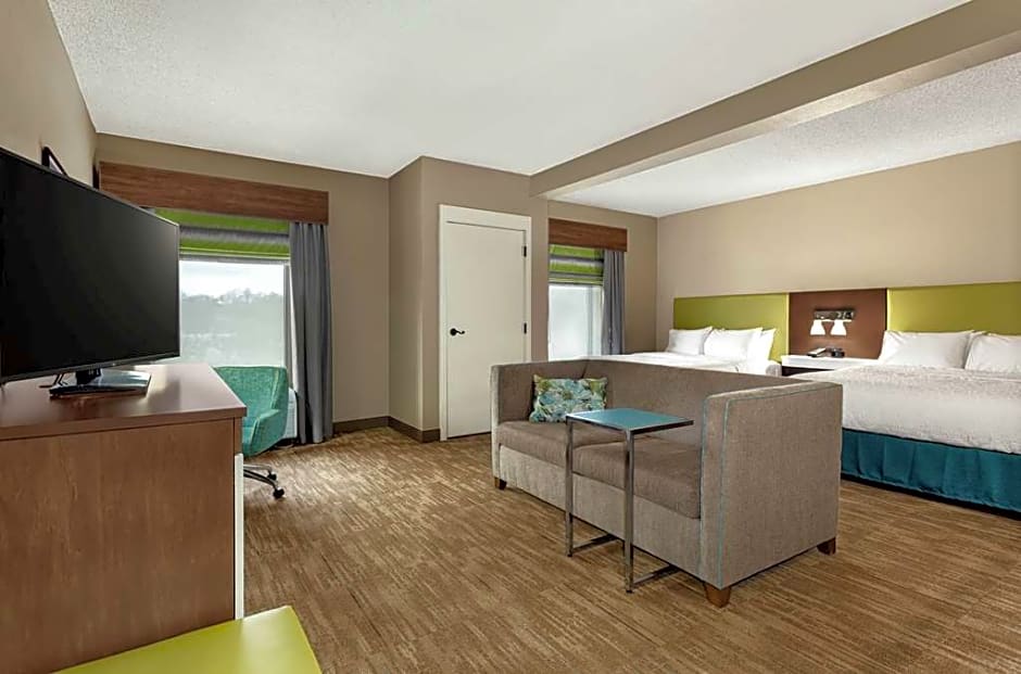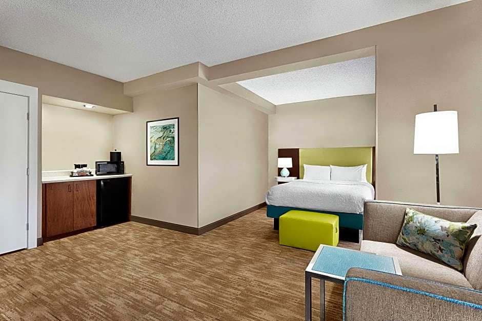Whirlpool tub, sofa bed, desk and ergonomic chair, kitchen area, free WiFi, 32-inch LCD HDTV. Unwind in this spacious one-bedroom suite, featuring a comfortable king-sized bed and sofa bed. Prepare some food in the small kitchen area, containing a mini-refrigerator and microwave. Surf the web with our free WiFi access, or use it to get some work done at the desk. Stretch out on the sofa and watch on-demand movies on the 32-inch flat-screen HDTV. Refresh in the bathroom, with a whirlpool bathtub and separate shower. Settle down for the night in the clean and fresh Hampton bed®. Other amenities in this suite include bath products, fluffy towels, and a coffee machine.